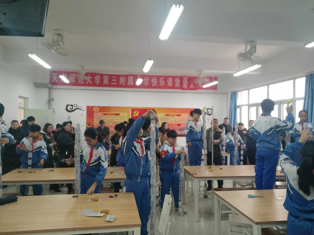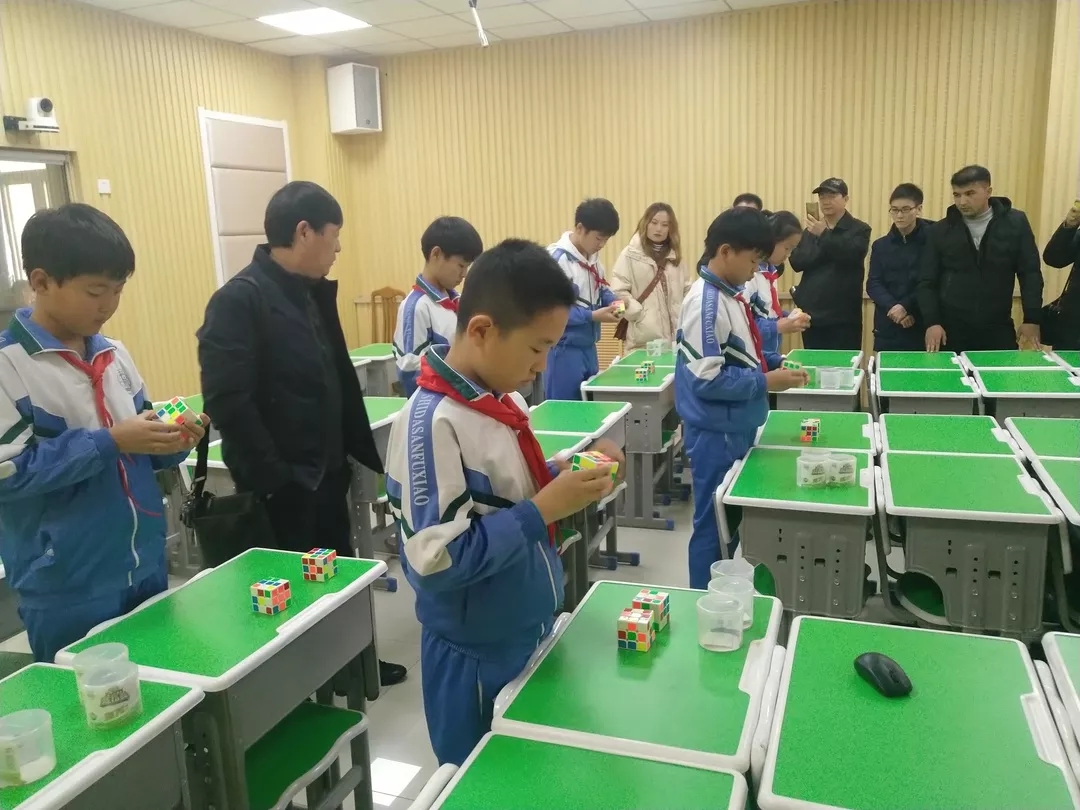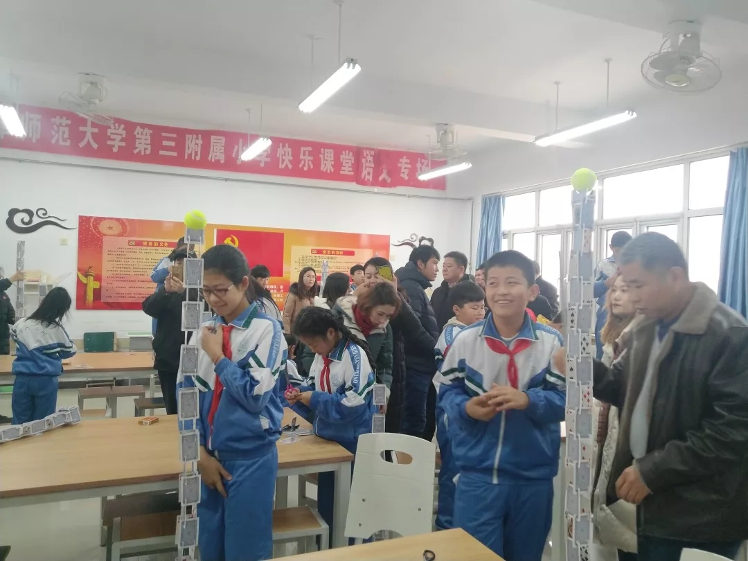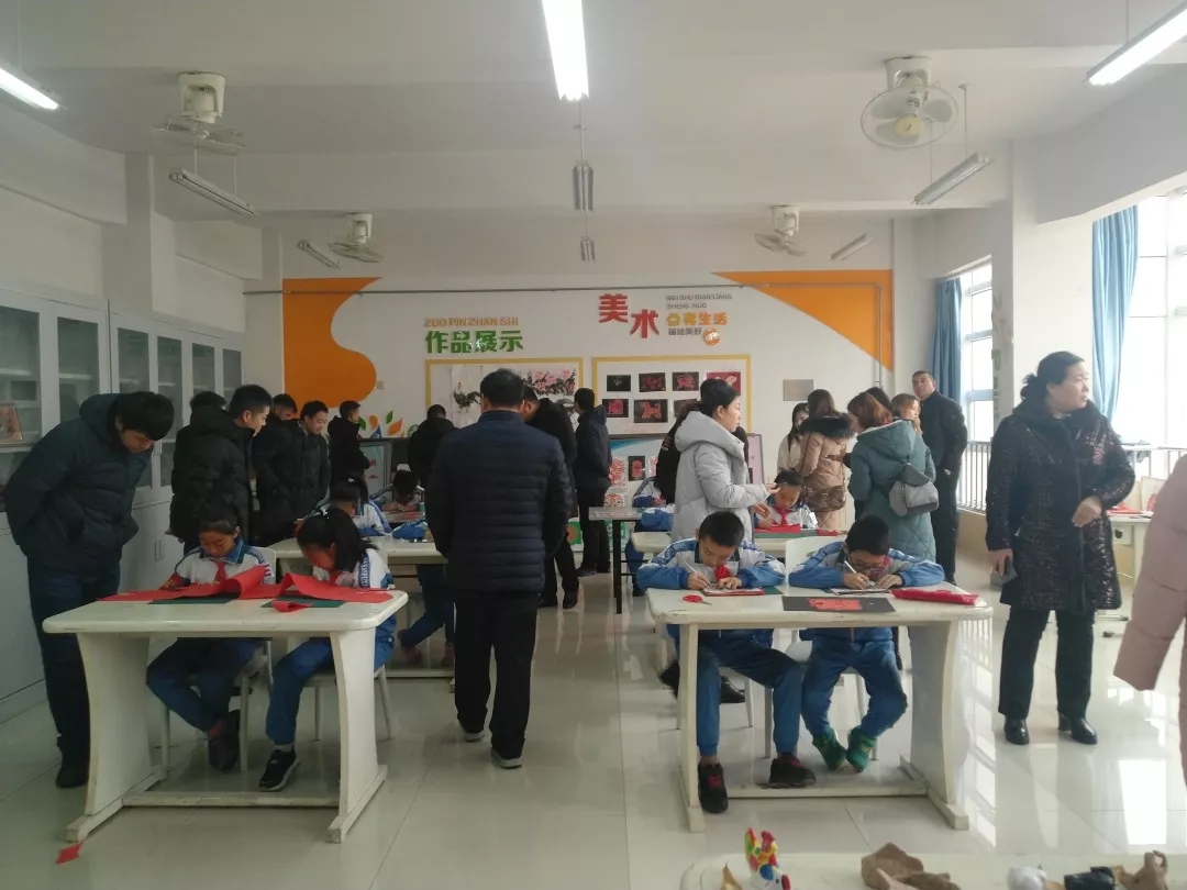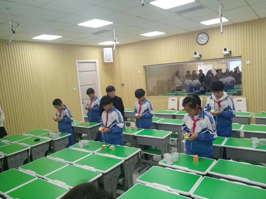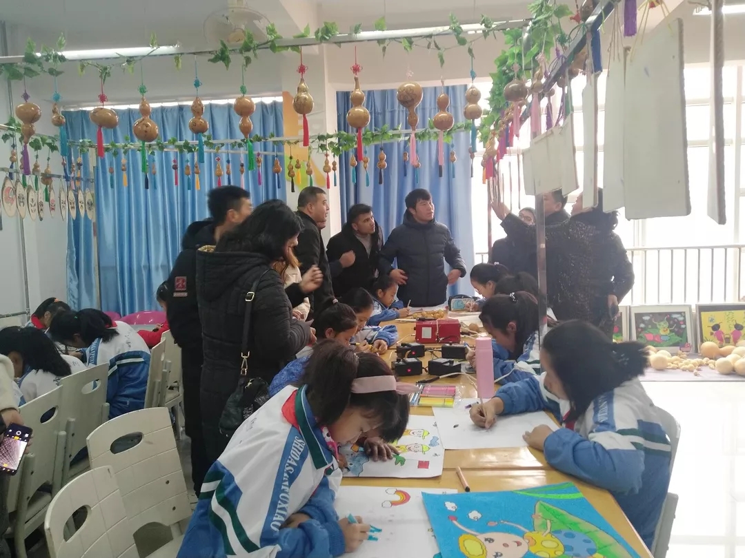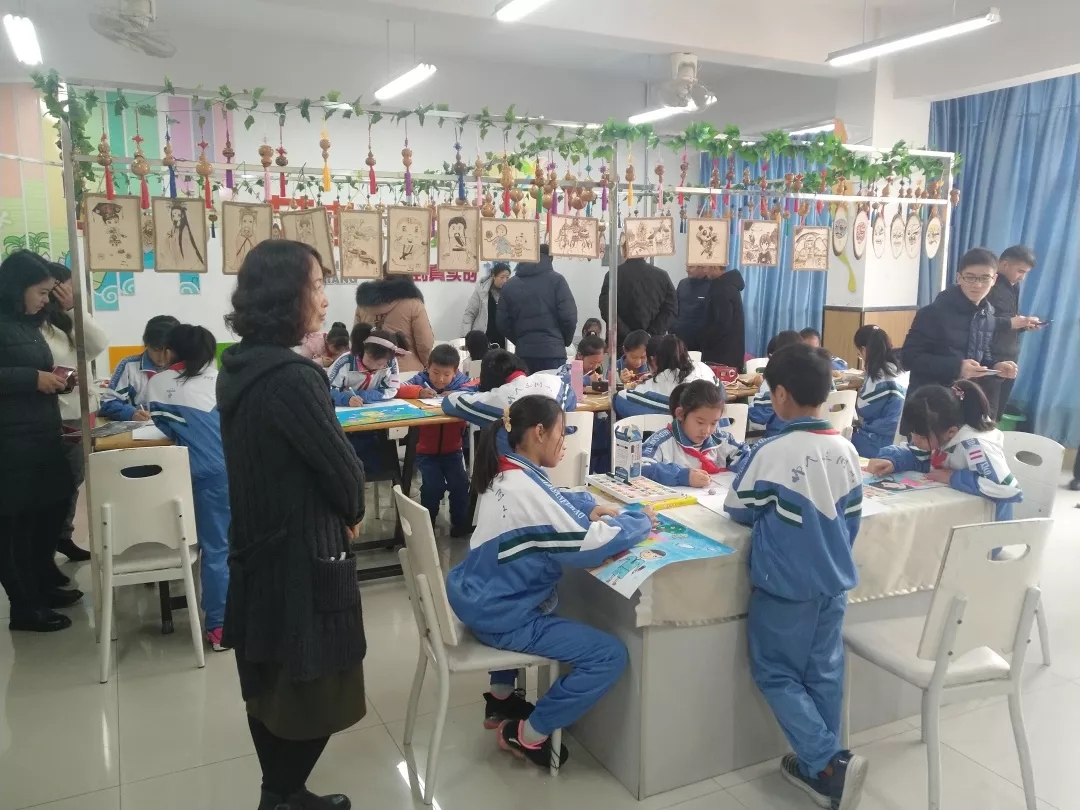 12月份正值学校开展学生“百花争艳”活动,五年级和六年级的学生们为客人们进行了语文诵读和魔方复原展示。铿锵有力的一首《少年中国说》引得老师们连连称赞,打乱的魔方学生很快将其恢复原状。在学生社团中心,一幅幅剪纸作品神韵兼备,一个个葫芦烙画作品做工精美。一张张红纸、一个个葫芦在孩子们的手中像被施了魔法似的,一转眼就变成了造型多变的剪纸作品和精细美观的葫芦烙画作品。老师们看着孩子们投入的样子,不禁竖起了大拇指。而科技活动——纸牌搭建展示更是引得老师们掌声不断。