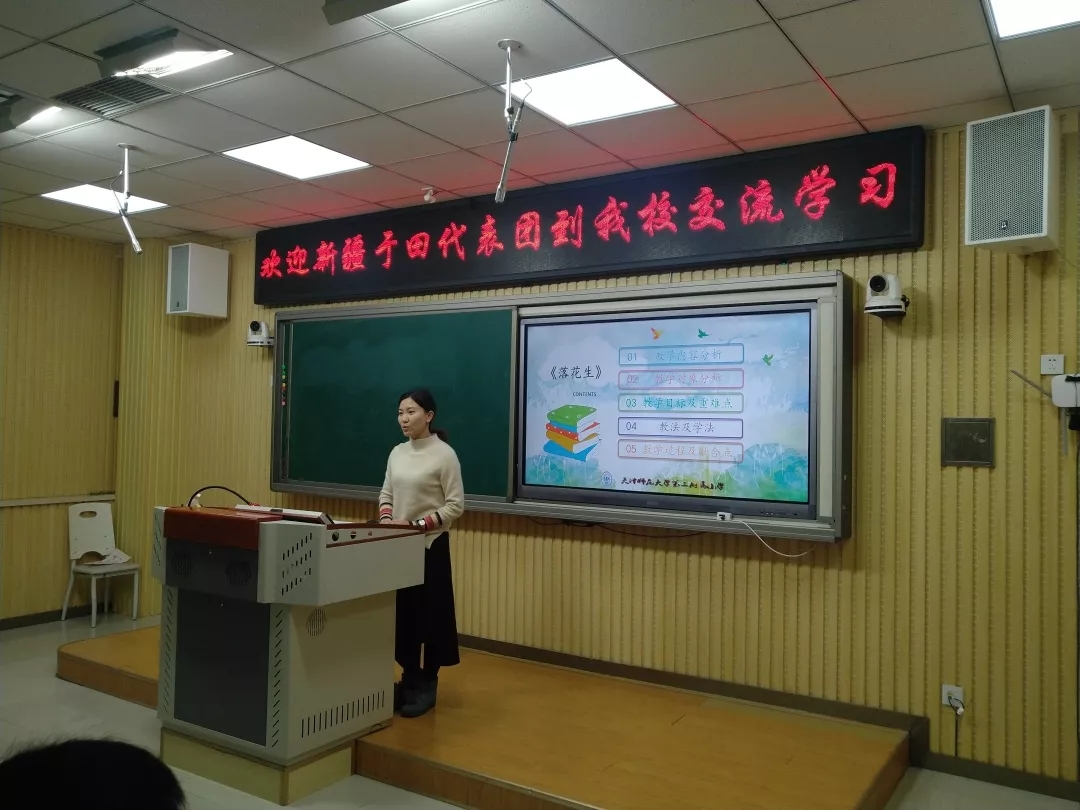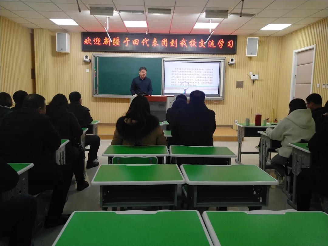 为了达到津疆两地教学管理的深度交流,我校教务主任张洪杰向来访的领导们做了题为 “立足校本教研,促进学校发展”的经验交流。张主任围绕学科教学、教育科研、教师成长等方面就学校本教研的开展进行了详细的介绍。通过交流实现了有针对性的实效沟通,达到了相互引领、共同提升的目的,为推进两地深入合作交流,增进津疆两地人民之间的深厚友谊打下良好的基础。