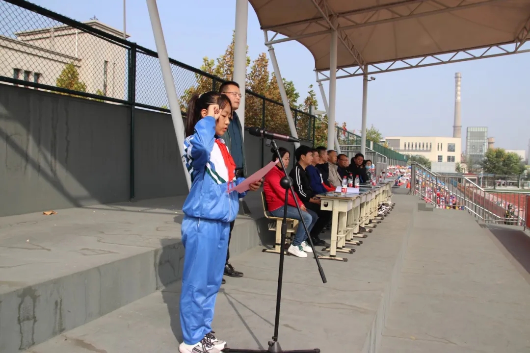开幕式由德育处刘治会主任主持,教务处张洪杰主任致开幕词,时秋燕老师和鹿梦茹同学分别代表裁判员和运动员进行宣誓。