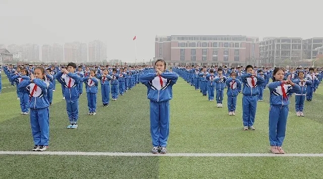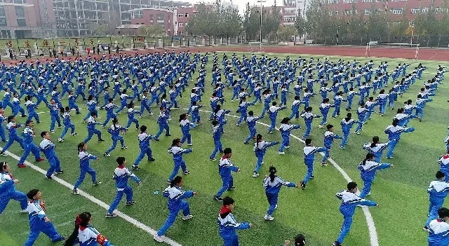 开幕式最后,我校三至六年级全体学生进行了团体广播体操、武术操展示,整齐划一的动作、威武雄壮的气势将我校学生健体报国的决心展现的淋漓尽致。