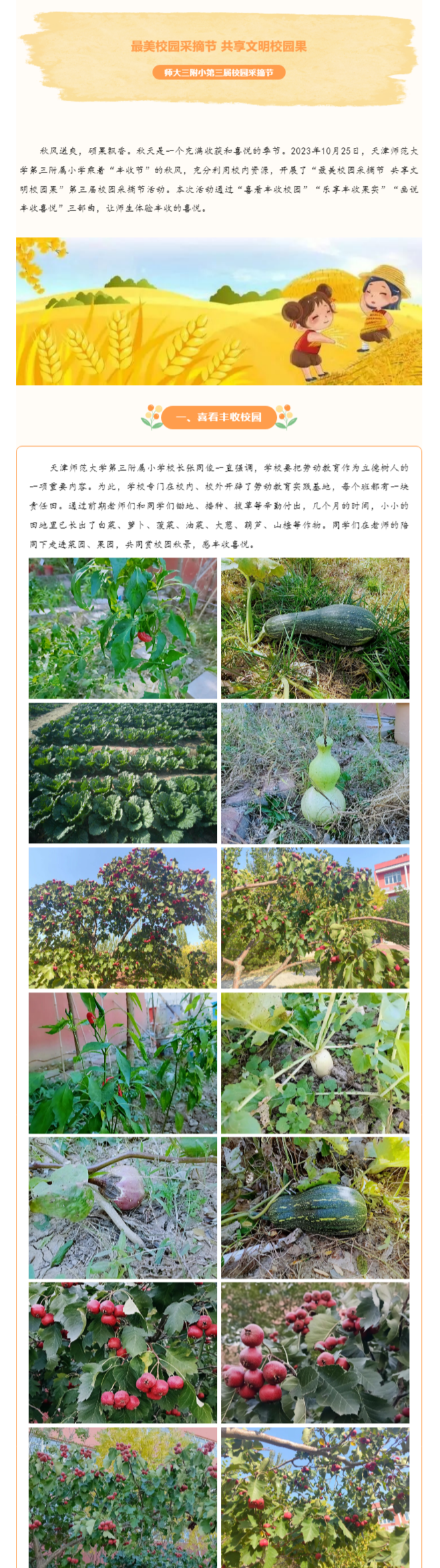 【劳动教育】最美校园采摘节 共享文明校园果 ——师大三附小第三届校园采摘节