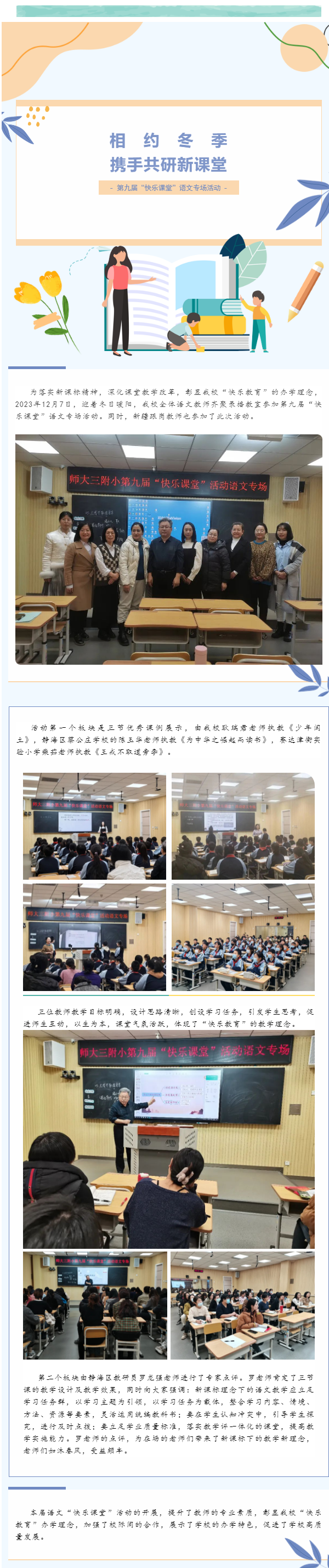相约冬季 携手共研新课堂——师大三附小举办第九届“快乐课堂”语文专场活动