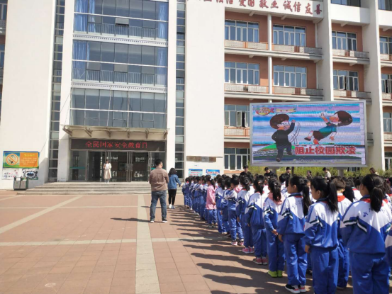 最后孙主任给全体师生提出倡议:在和别人打交道时,要做到“与人为善”。首先,要学会宽容。宽容就是人与人之间相处时能充分的理解他人、体谅他人,拥有宽的胸怀。同学们生活在一起,产生一点摩擦是正常的。在平时生活中,应该学会说“对不起”。矛盾发生后,应该学会包容、体谅他人,不能斤斤计较,应该让矛盾迅速化解,也就是人们常说的:“退一步海阔天空”。所以,我们应该学会友善待人,使自己的周围充满欢乐。但是宽容友善不是无原则的饶恕和纵容,当你发现别人或自己受到欺凌时,应该及时寻求家长、老师甚至110的帮助。总之,要做一个文明的学生,做事不能冲动,说话不能盛气凌人;得饶人处且饶人,凡事要考虑后果;发生矛盾时不要抓住对方的错误不放,而应该检讨自己错在哪里;要严于律己,宽以待人交友要谨慎。不与行为不端的人联系,不与社会上的人交朋友,不要上网交友,多参加各种有意义的文体活动,远离不良文化。提高自我保护意识。遇事要及时告诉家长和老师,少去情况复杂的场所不要单独外出,身上也不要携带太多的钱物;受到暴力侵害时,采取灵活的应急措施,要及时报警同学们,让我们都做一个讲文明、守纪律的宽容友善之人,帮助学校“扫黑除恶”,反对校园欺凌,远离暴力,让安全伴我们健康成长,共建我们友善和谐的校园。
