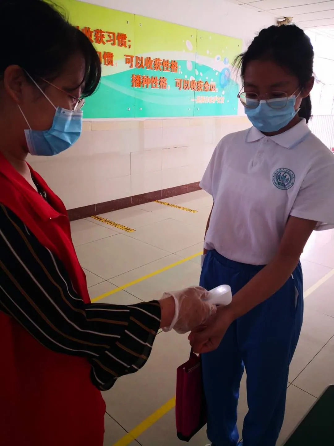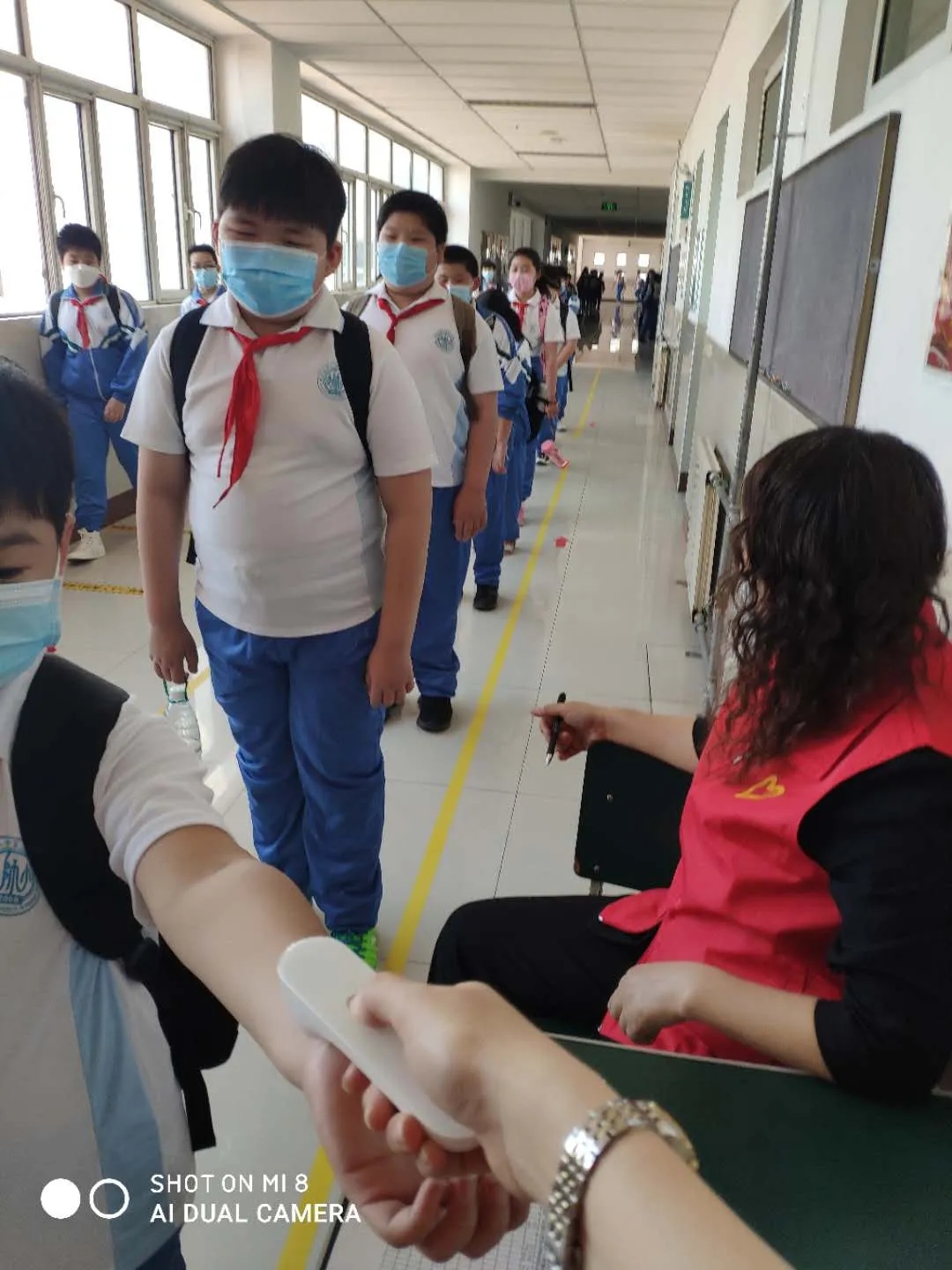 学生们到达所在班级门口后,班主任们会再次为学生们测温并记录,体温正常者方可入班。通过一系列严谨的疫情防控措施,孩子们深深感受到了疫情防控的重要性,相信他们会在老师的精心呵护下,健康快乐安全地学习生活。
