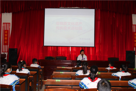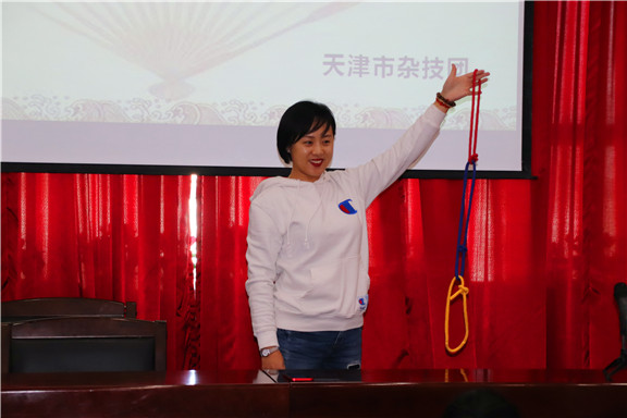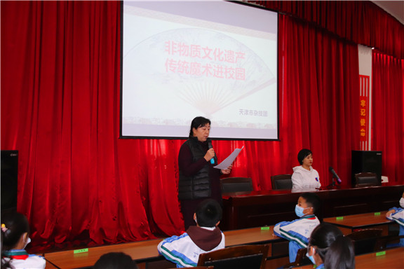 “天津杂技团是以传承中国传统杂技艺术为宗旨,以弘扬中国传统文化为目标,以推广中华传统文化为己任,以维系非遗传统杂技项目资源为要点的国有大型现代杂技艺术演艺团体。亲爱的同学们,今天我们在这里组织非物质文化遗产传统魔术进校园活动……让我们以最热烈的掌声邀请杂技团的小刘老师来大家走进魔术的世界。”活动在德育处姚主任的精彩主持中拉开帷幕。